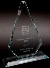 The 10th Annual Independent Buyers Association Trade Show took place on Friday 9th September at Whittlebury Hall Hotel, and was followed in the evening with a formal dinner and presentation of the much coveted ‘Supplier of the Year Award’. Having been successful in winning the title for 2010 Falcon MD Kinburn Bargh took a relaxed backseat and eager to see who the 2011 winner would be. To his amazement Falcon Trunking Systems Ltd was the name announced as the 2011 winner. Back to back wins for a Supplier is a first for the Independent Buyers Association and no one was more surprised than Kinburn.